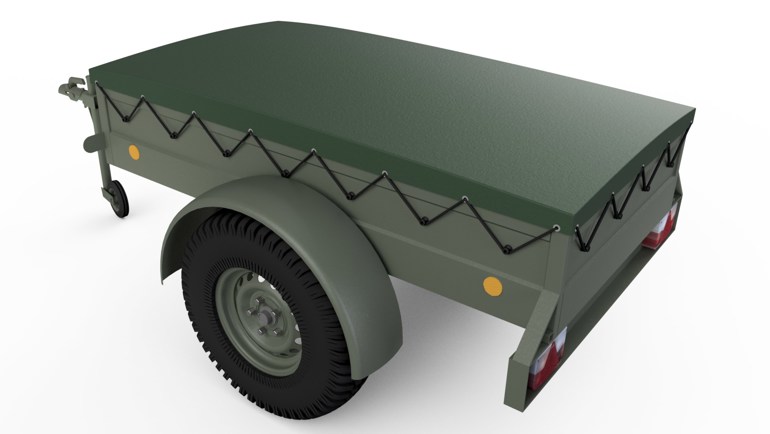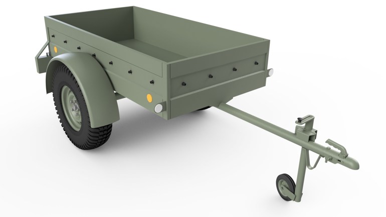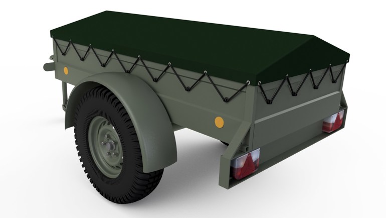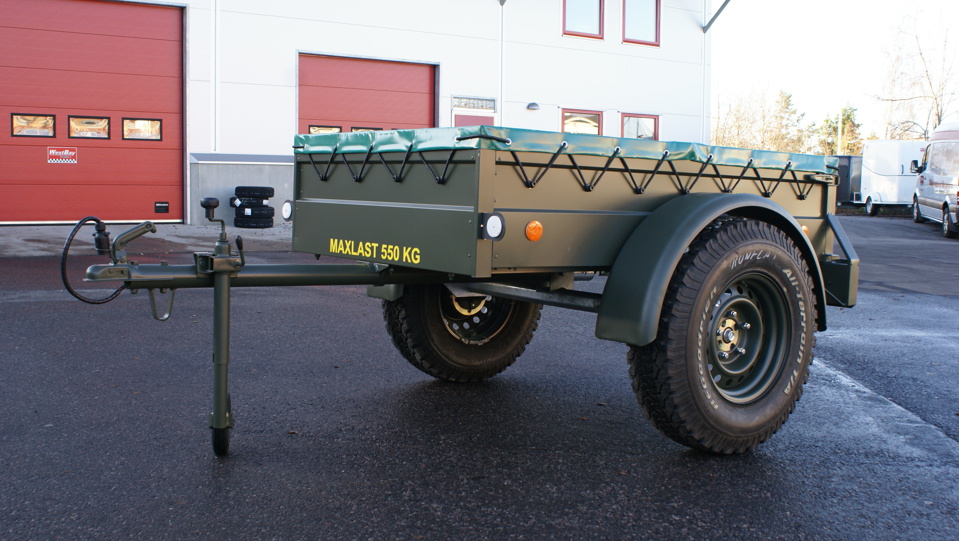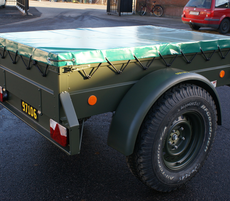 Smaller trailer with large payload for extension of the cargo capacity during missions. Generally, customer adapted to towing vehicle wheel specification, ground clearance and total width. Can be equipped with soft canvas in many different heights or with hard cover over cargo area.