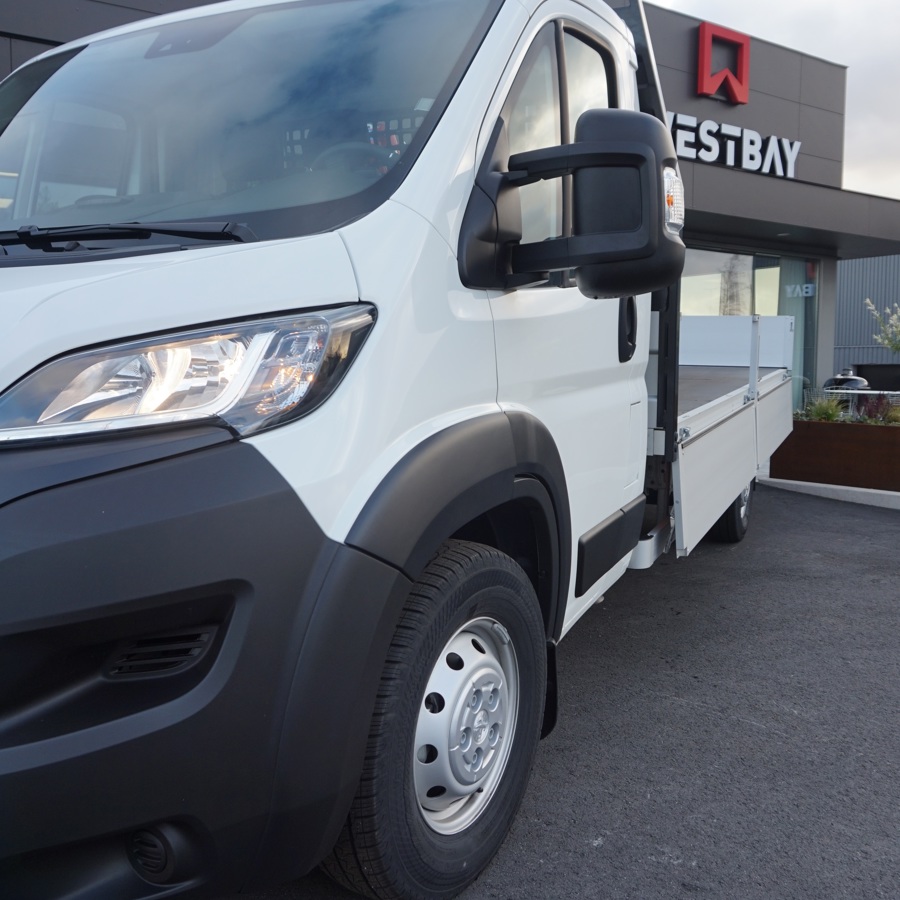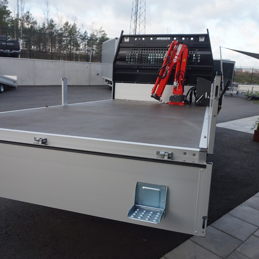 4-cylindrig dieselmotor med 165 hk, framhjulsdrift, manuell växellåda 6G, axelavstånd L4, vit solid kulör, förarstol med armstöd och värme, passagerarsoffa för två passagerare, förar- och passagerarairbag, navigator, Bluetooth-anslutning med handsfree, elektriska ytterbackspeglar, elektriska fönsterhissar, fjärrstyrt centrallås, automatisk klimatanläggning, regnsensor, läderklädd multifunktionsratt, läderklädd växelspaksknopp, farthållare. Eftermonterad utrustning och påbyggnad: flak med fällbara eloxerade aluminiumlämmar, flakmått längd 4200 mm, bredd 2100 mm, lämhöjd 350 mm, lastvikt ca. 900 kg, surrningsöglor i lastgolvet, fotsteg på baklämmen, framlastningsskydd med genomsikt, 1 st stor förvaringslåda, kranmontage mot framstam på passagerarsidan, kranmodell Maxilift 110.2, räckvidd kran 4,5 meter och där 200 kg, krankapacitet max 990 kg, två hydrauliska utskjut och två manuella utskjut, spakkontroll, hydrauliskt stödben på passagerarsidan.