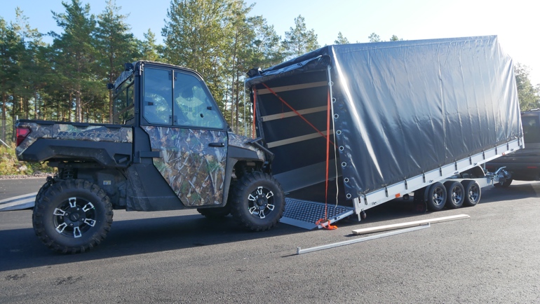 För att få med sig en UTV och ha plats för skrymmande gods, fick vi förtroendet att leverera en Adam multitransport i måttet 4500x2100mm med ett grått kapell.