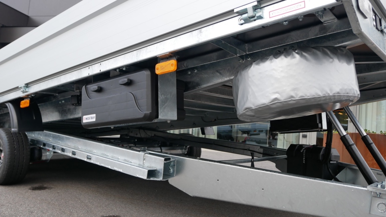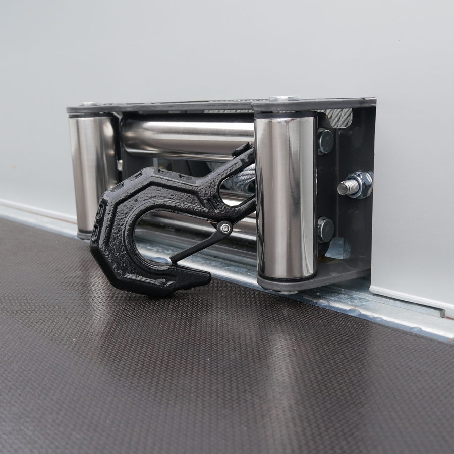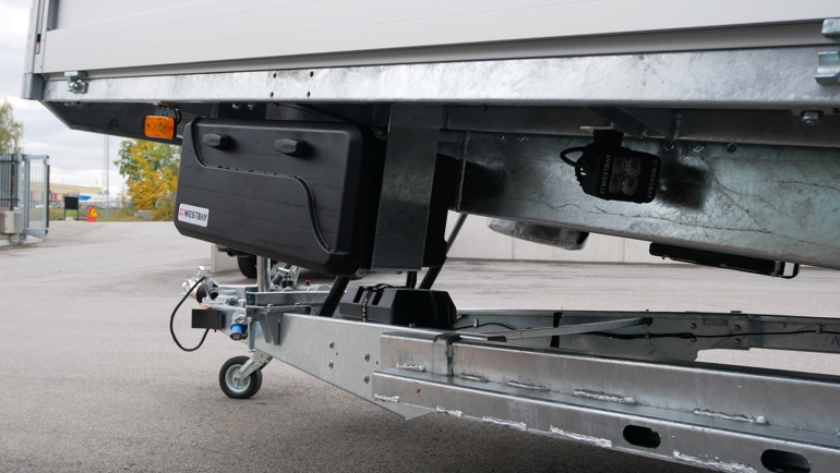 Förutom tätare flakbalk 300mm c/c, 4st backljus i LED (4x5w), verktygslådor och reservhjul på fäste samt PVC-skydd utrustades denna vagn med elektrisk vinsch från Warrior winches med kap. 3600kg, för att enkelt hjälpa till vid eventuellt havererade maskiner eller gods i olika utsträckning.