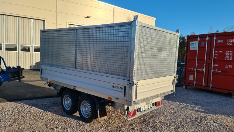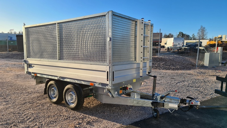 Denna kund ville från grundspecifikation utrusta sin vagn med 1 000mm utfallande gallergrindsats, plåtbelagd insida för smidigast hantering av stora volymer av ved samt stege på främre läm / grindsats för enkelt åtkomst av lastytan.