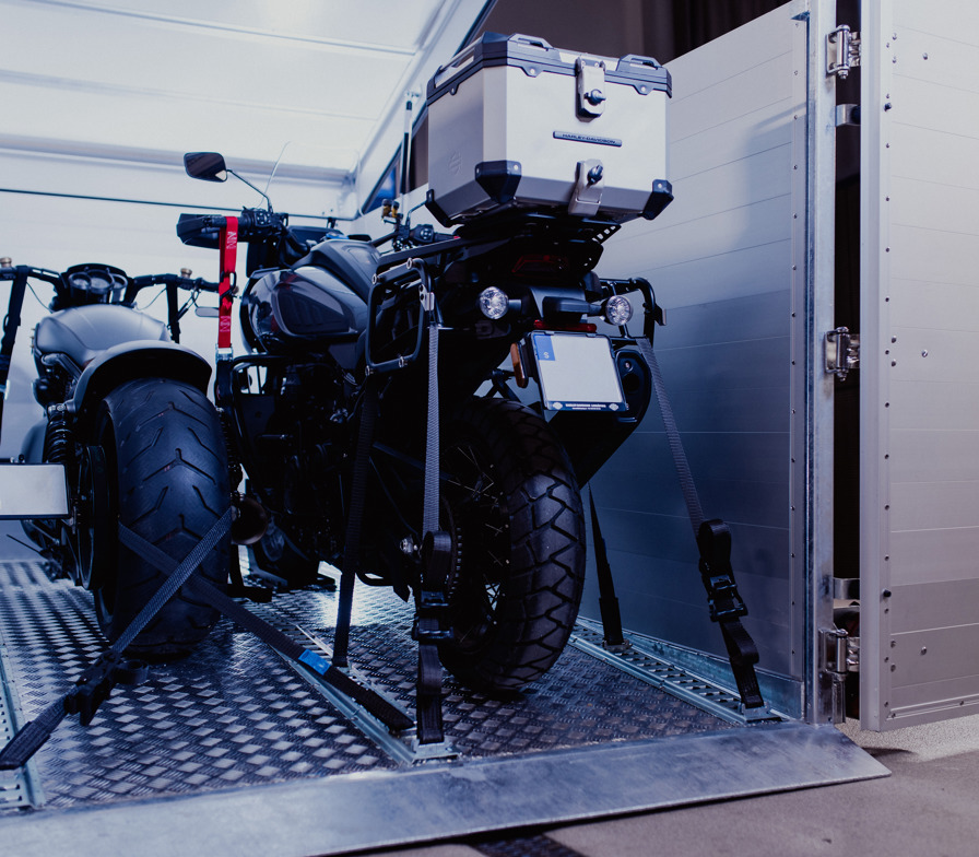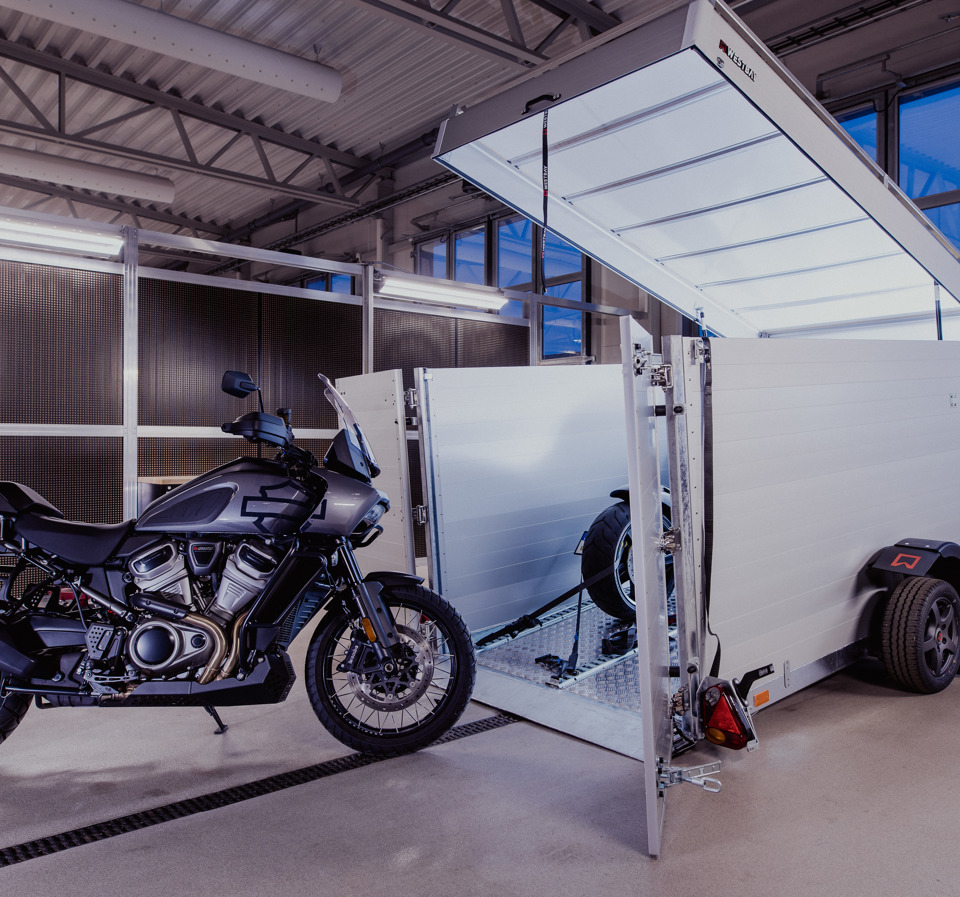 Kombinationen mellan Easyloader light och Cover kåpavagn bildar den perfekta MC-transporten. Genom att hydrauliskt vrida axeln, sjunker chassit till en låg nivå. Flakgolvet har en mycket låg angöringsvinkel tack vare det extra sluttande lastgolvet. Höjning och sänkning av flaket sker med en dubbelverkande manuell hydraulpump som sitter monterad vid påskjutsbromsen.