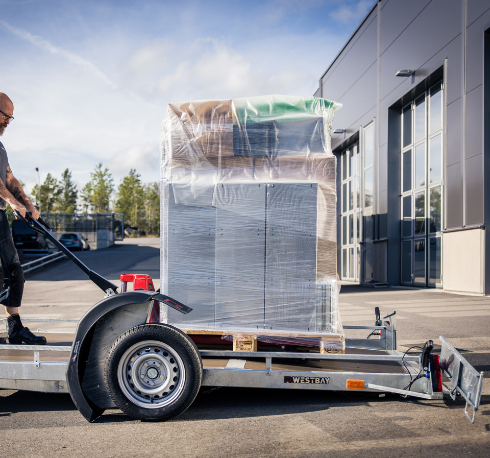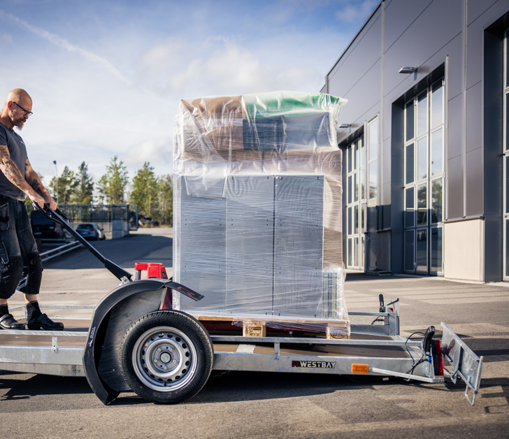 Höjning och sänkning av flaket sker med en dubbelverkande manuell hydraulpump som sitter monterad vid påskjutsbromsen. Med några enkla handgrepp så är vagnen redo för lastning eller lossning. Runt flaket sitter en skyddande reling som fungerar som avkörningsskydd. I golvet sitter rejäla lastöglor som dessutom är rostfria. Hela chassit är varmgalvaniserat och axelsystem är tillverkat av välkända Al-Ko. Söker du någon påbyggnad så kan vi erbjuda skåp, högre lämmar och aluminiumkåpa eller kapell i flera färger. Klicka på "Bygg Ditt Släp".