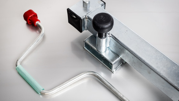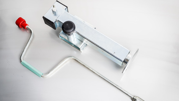 Stödben på justerbart svivelfäste, populärt tillval till de flesta vagnar utrustade med aluminiumramper för att minska det negativa trycket på kulhandsken.