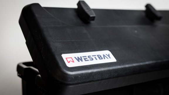 Svart låsbar verktygslåda med tryckande tätning och vattentåliga transporter.